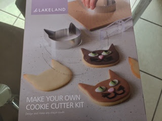 I came across a 'make your own cookie cutter kit' from Lakeland which was absolutely perfect. It was reduced at the time from £9.99 to £4.99 and is currently £2.99; I bought two so I could send one to my sister. It was really easy to bend the metal strips into different cow print shapes and secure the ends with the tape provided, and the cookie cutters worked perfectly on the black fondant (I used Renshaw).