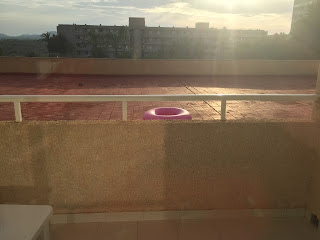 | view from my terrace - with a child's rubber ring on the flat roof |
