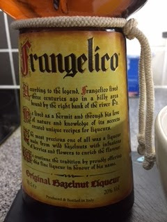 This is Frangelico, if you haven't tried it before. It's a liqueur made with Italian hazelnuts and its origins are thought to date back 300 years when hazelnuts were distilled by monks (hence the design of the label!). It tastes really nice in cocktails.